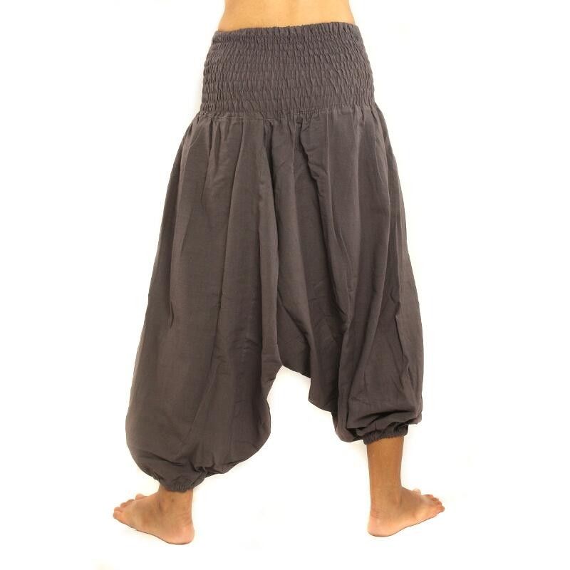 They are particularly flexible due to elasticated waistbands on the upper waistband and usually also have an elastic band on the calf. The cut is very similar to that of the low cut harem pants and can be considered as a short version of our harem pants. Often you can find long counterparts of the bloomers in our category harem pants.