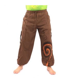 This harem pants (Turkish bloomers) has an elasticated waistband and legs. Thus, it fits perfectly to the hips and waist. Through the elastics on the legs, it can also be worn as a culottes.