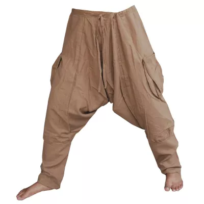 This Sarouel harem pants made of soft, airy and fluffy cotton is provided with 2 decorative ribbons in the front but is actually held by an elastic band in the back. The pants in Sarouel harem pants style is incorporated with large, deep side pockets. Again a new design creation from our favorite fashion smithy in Bangkok.