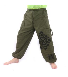 The pants are made of high quality cotton and partly printed with Sanskrit letters and a big Om sign on the pockets.