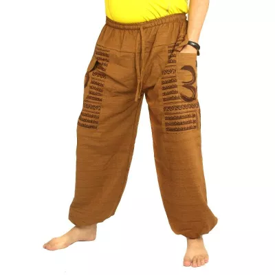 The pants are made of high quality cotton and partly printed with Sanskrit letters and a big Om sign on the pockets.
