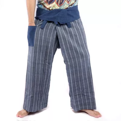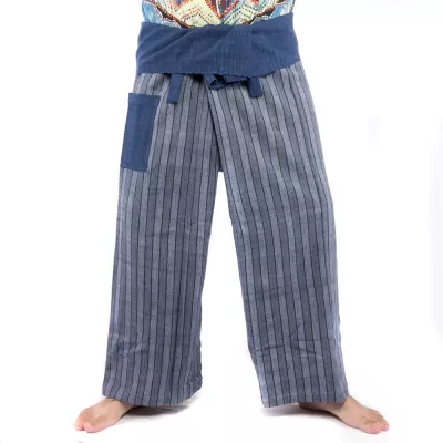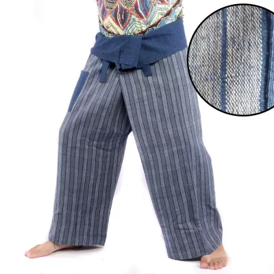 Striped Thai Fisherman Pants Indigo/White – Handwoven & Fair Trade from Thailand