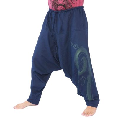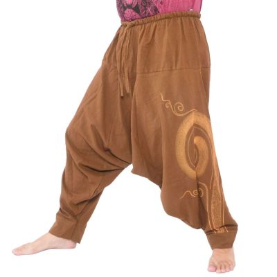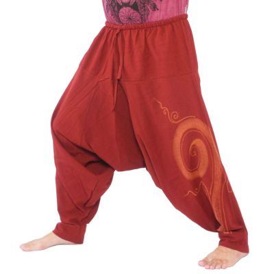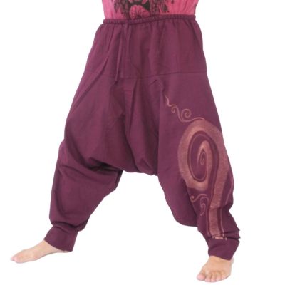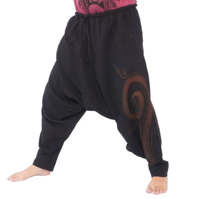 Pantalon harem en coton avec spirale peinte à la main , coton. Modèle (m environ 1,80m)