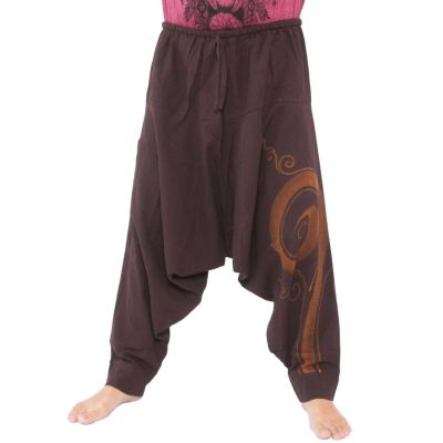 Sarouel à motif aztèque - marron. Modèle (m) environ 1,80m