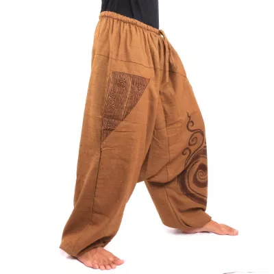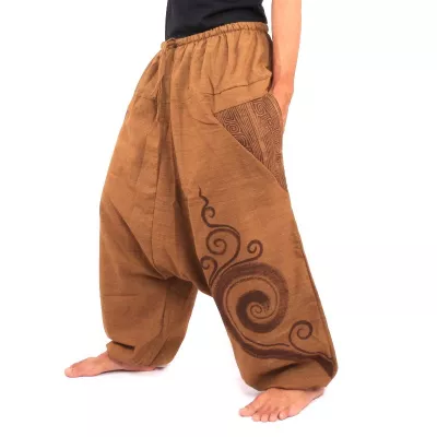 pantalon de harem avec des boucles en spirale dessin en spirale coton kaki imprimé