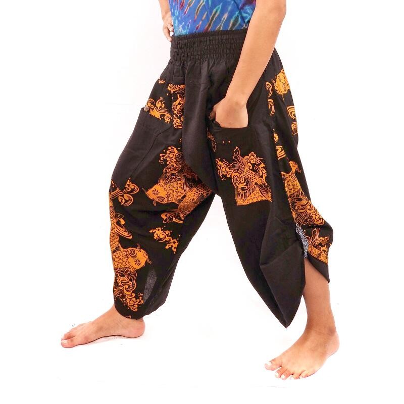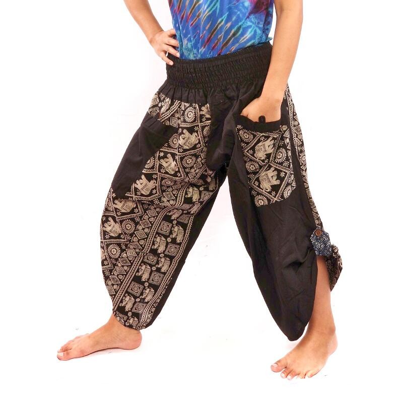 plus court au niveau de la taille. Le pantalon dispose d'une ceinture très souple à la taille. Tous les pantalons sont fabriqués dans une petite manufacture dans le nord de la Thaïlande et