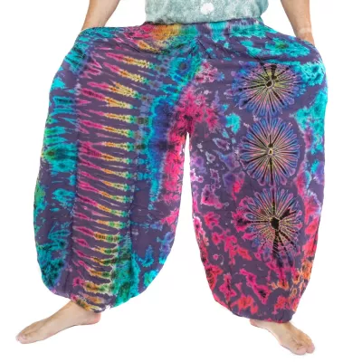 Ce pantalon batik en rayonne est doté d'un élastique à la taille et aux jambes. Ainsi, il s'adapte parfaitement aux hanches et à la taille. En outre, le pantalon peut être fixé à la taille avec un ruban pour un meilleur maintien.