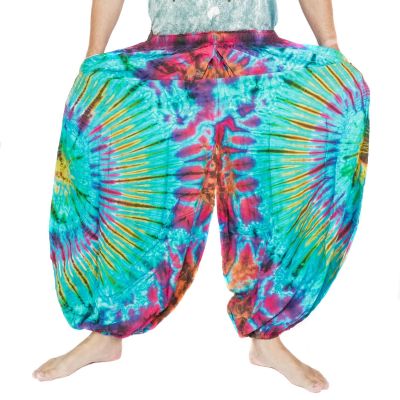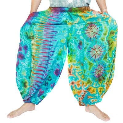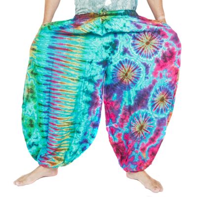 Ce pantalon batik en rayonne est doté d'un élastique à la taille et aux jambes. Ainsi, il s'adapte parfaitement aux hanches et à la taille. En outre, le pantalon peut être fixé à la taille avec un ruban pour un meilleur maintien.